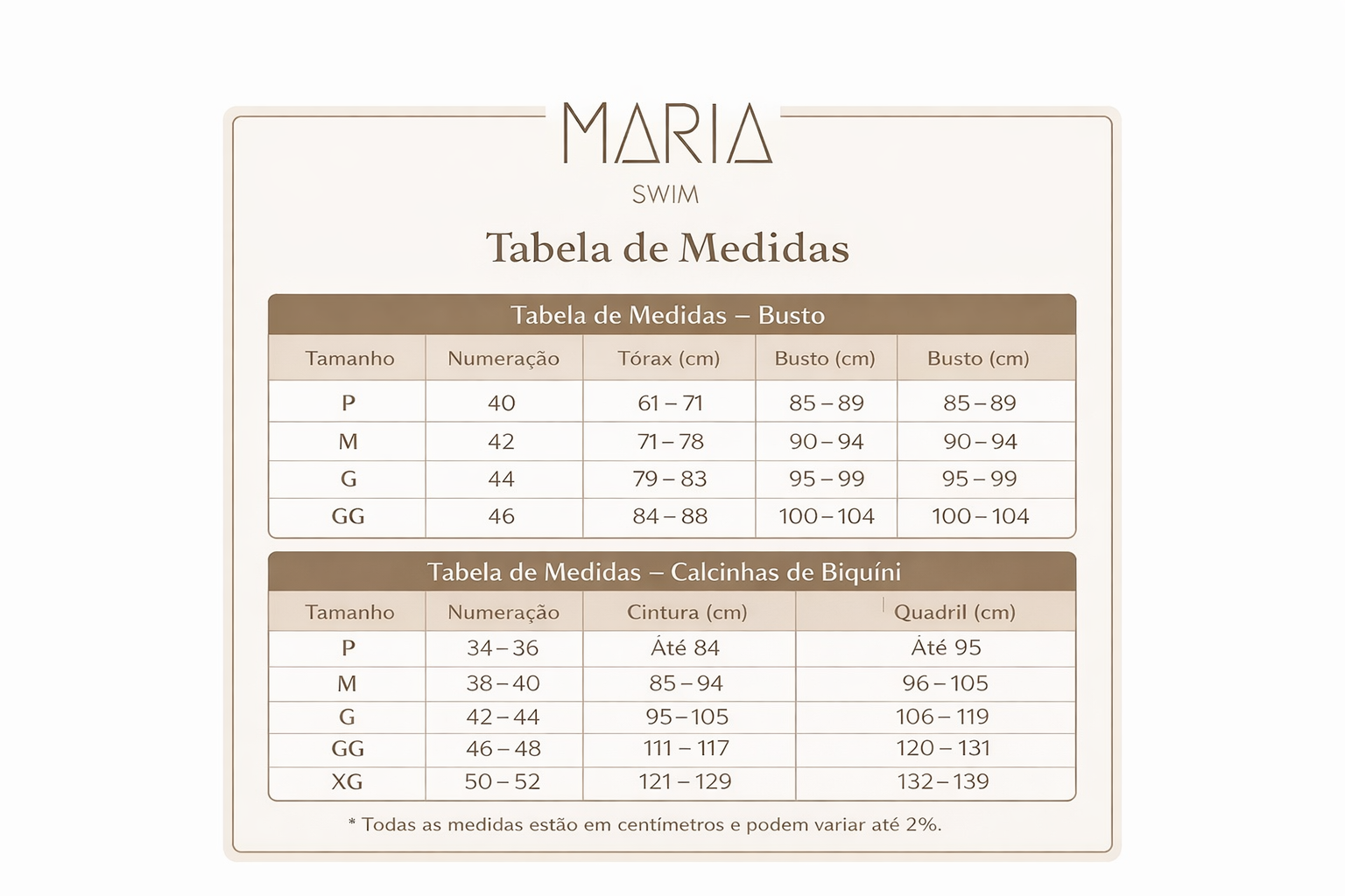 TABELA DE MEDIDAS